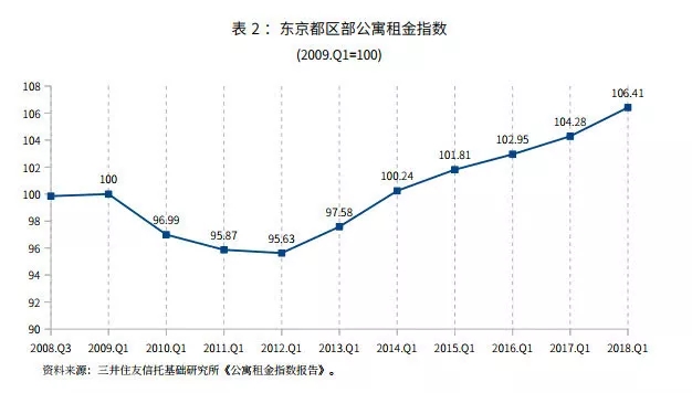 2018年第1季度,東京都區(qū)部住宅租金指數(shù)為