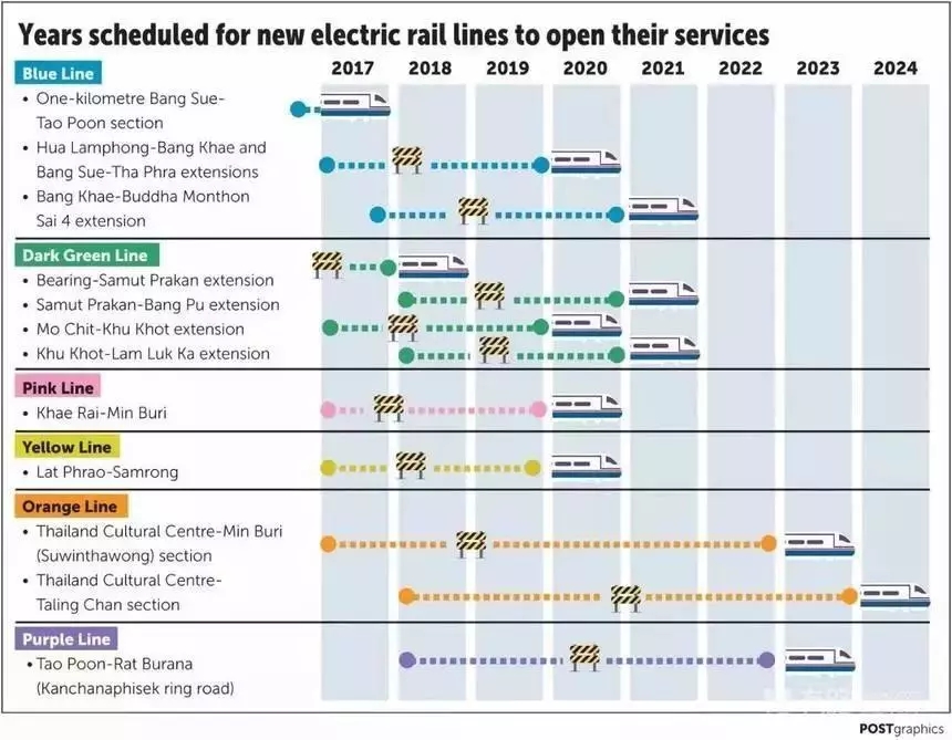 曼谷軌道交通建設進度示意圖